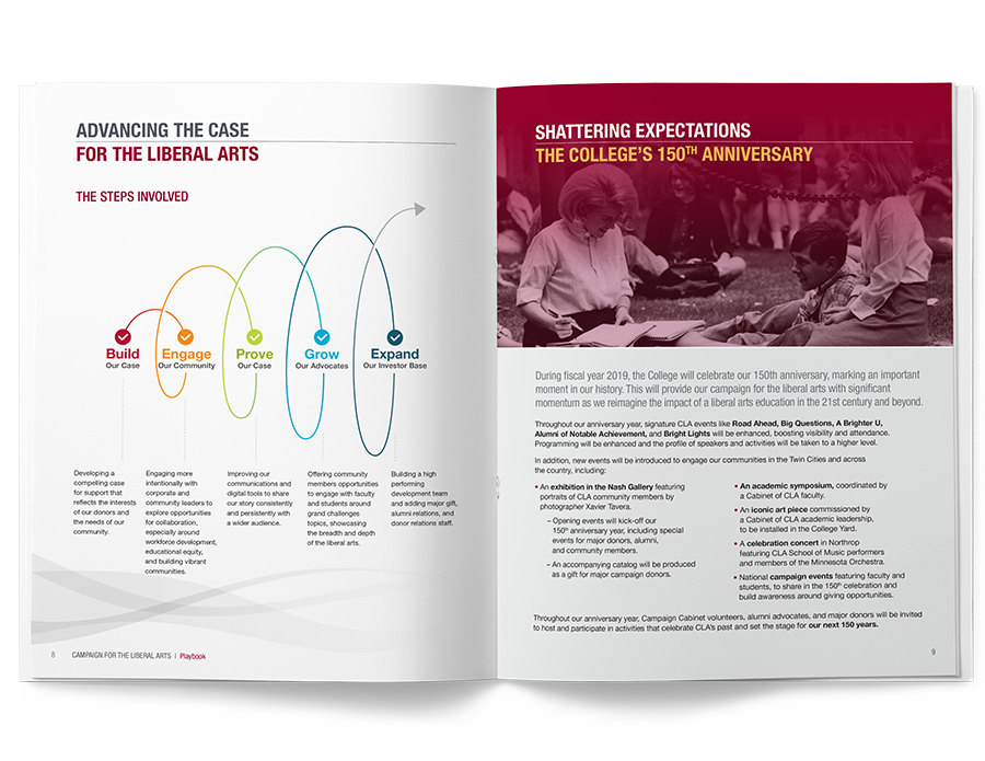 Collateral designs to raise awareness of the college's fundraising campaigns